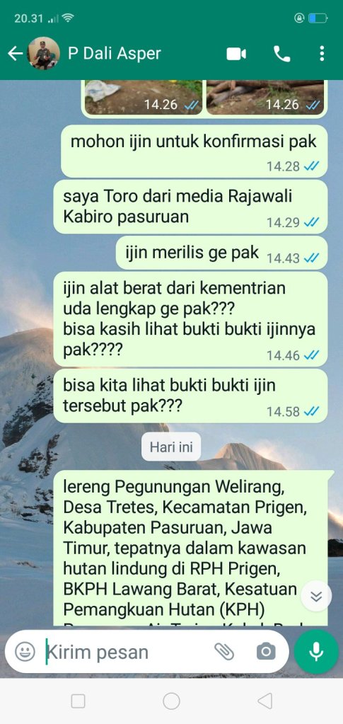 saat awak media mengkonfirmasi terkait pemotongan tersebut melalui via tlpon,beliau membantah kalau itu hutan lindung,tetapi berdasarkan peta dan juga informasi dari narasumber yang enggan di sebutkan namanya,hutan itu benar benar hutan lindung,pasalnya kawasan lereng gunung welirang,desa tretes,kec.prigen,kab.pasuruan jawa timur,termasuk dalam kawasan hutan lindung,di RPH prigen,BKPH lawang barat,kesatuan pemangku hutan (KPH)Pasuruan.